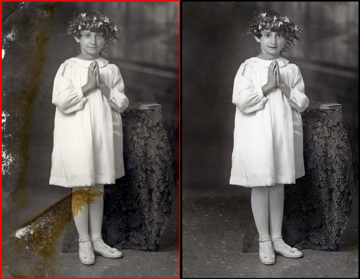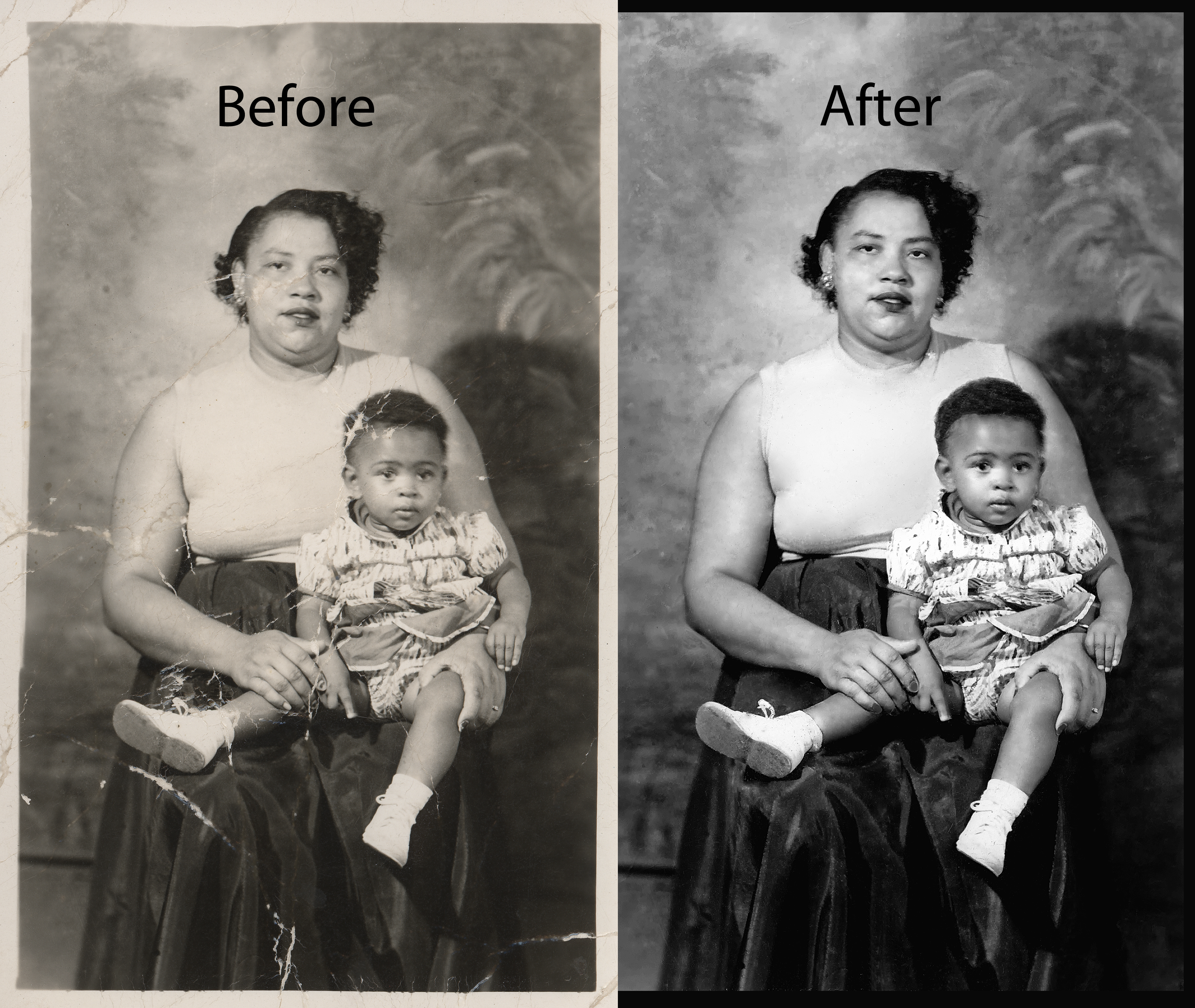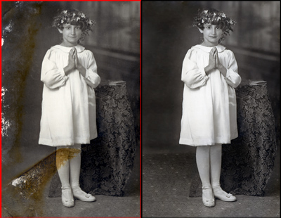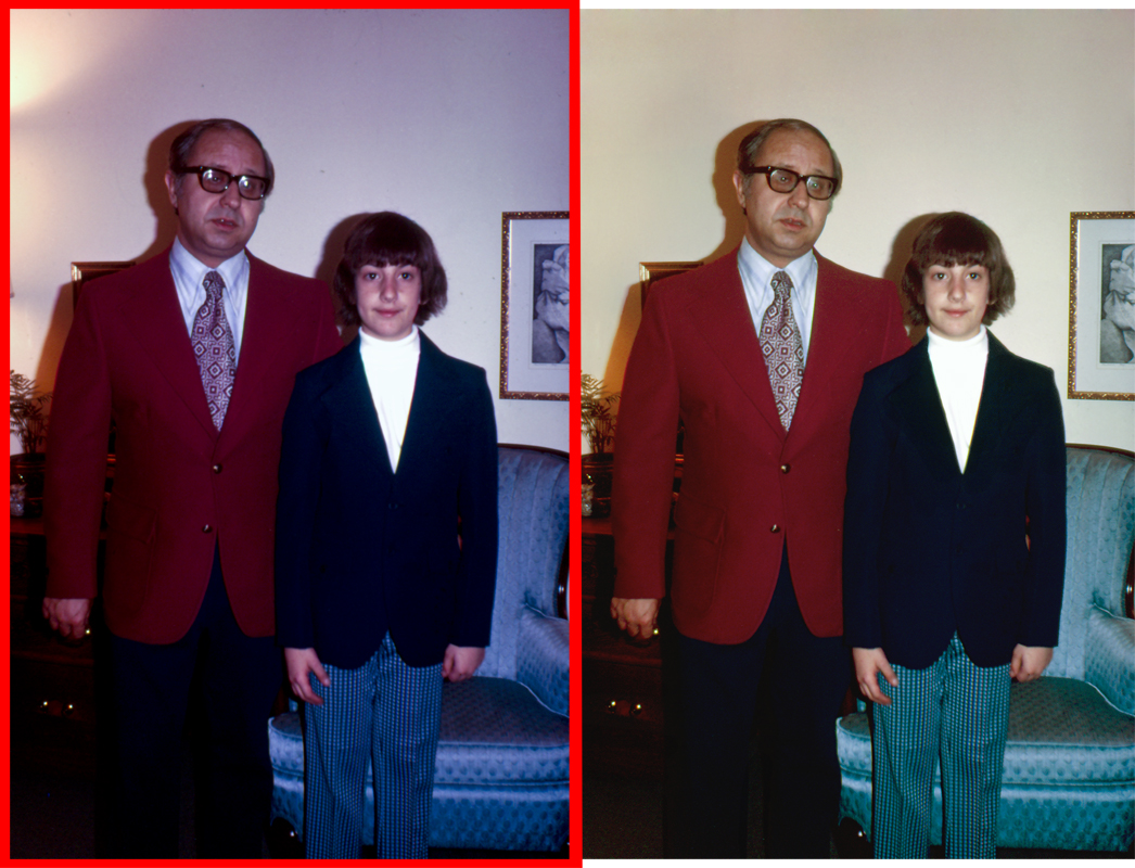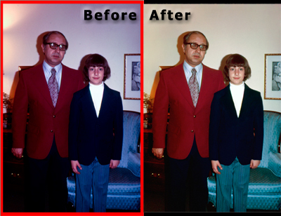 Photos, slides and negatives age and will turn yellow and begin to fade. Our digitizing process starts by professionally cleaning each photo, slide or negative with professional archival solutions before it's loaded to our scanner. Unlike most facilities we first use dedicated scanning software to enhance each image prior to bringing into Photoshop. In most cases it's possible to restore damaged photos and correct color balance at this point.